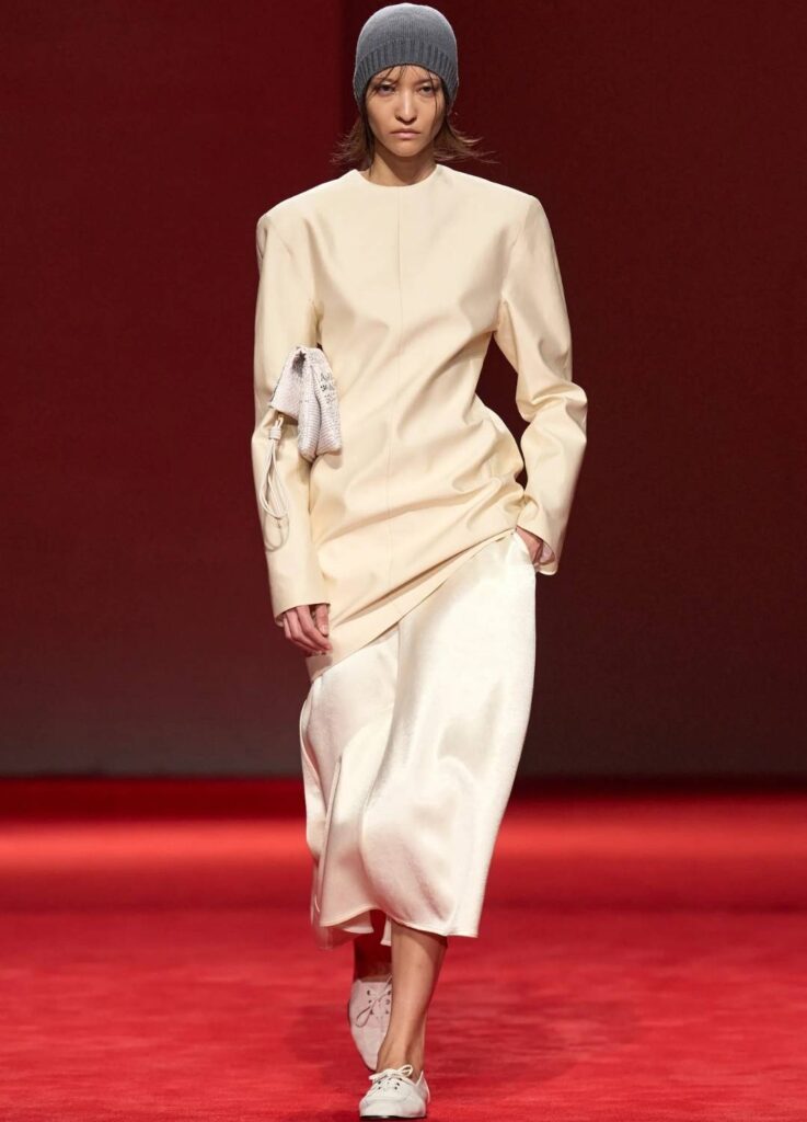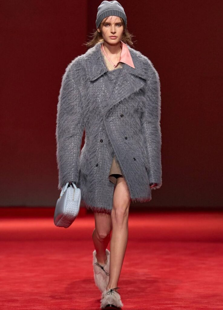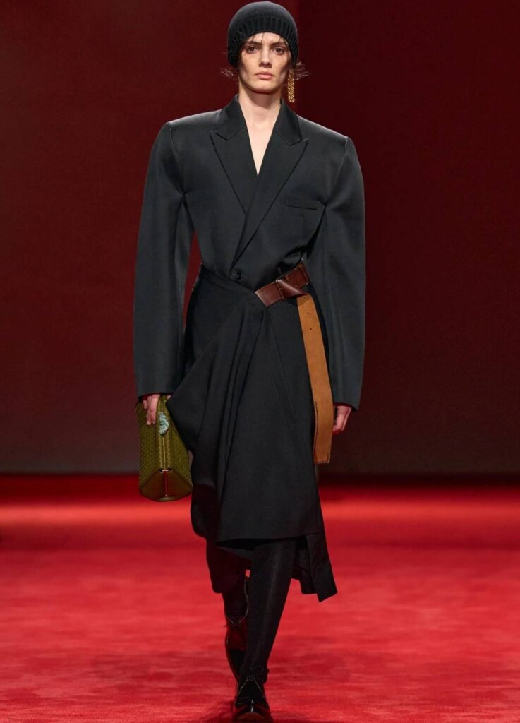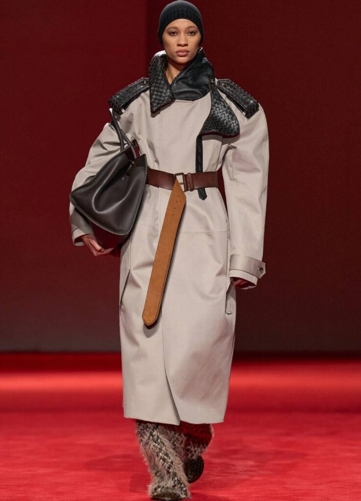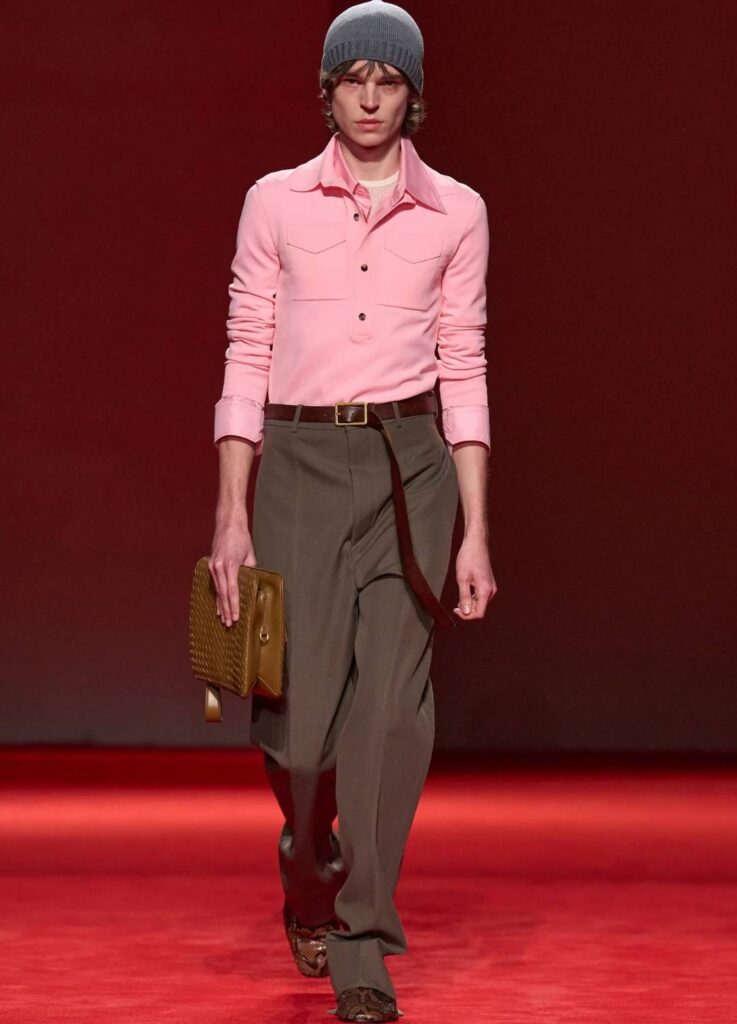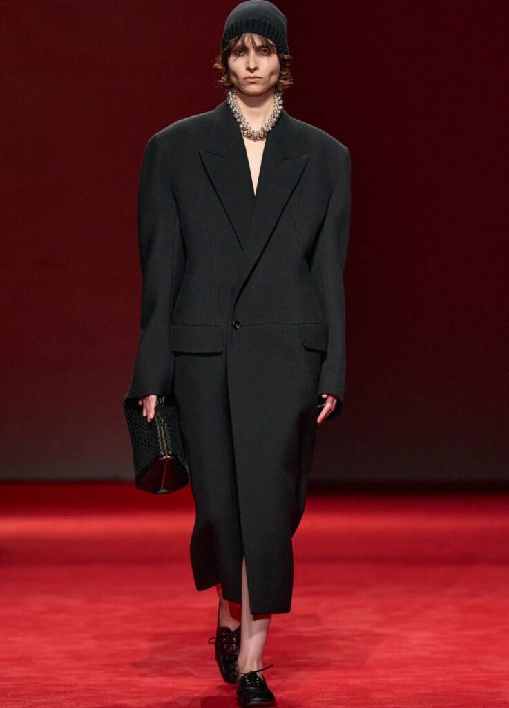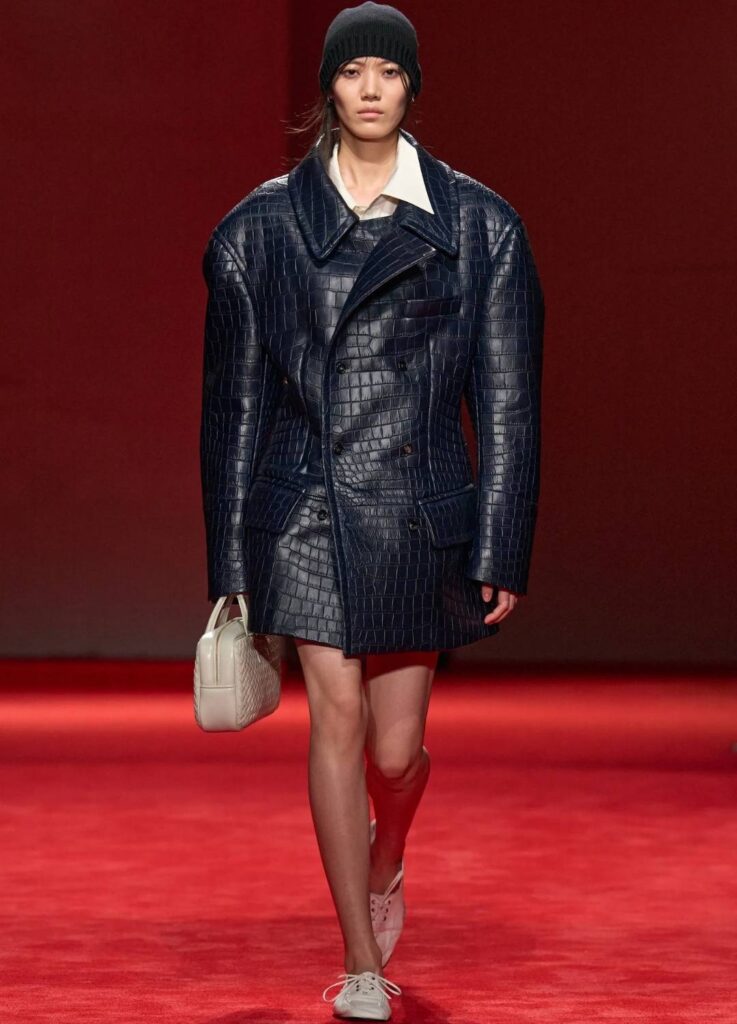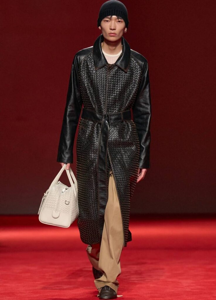 This reinforces Bottega Veneta’s positioning as a material-driven luxury house. The collection did not rely on overt logos or dramatic tailoring. It relied on surface authority.
