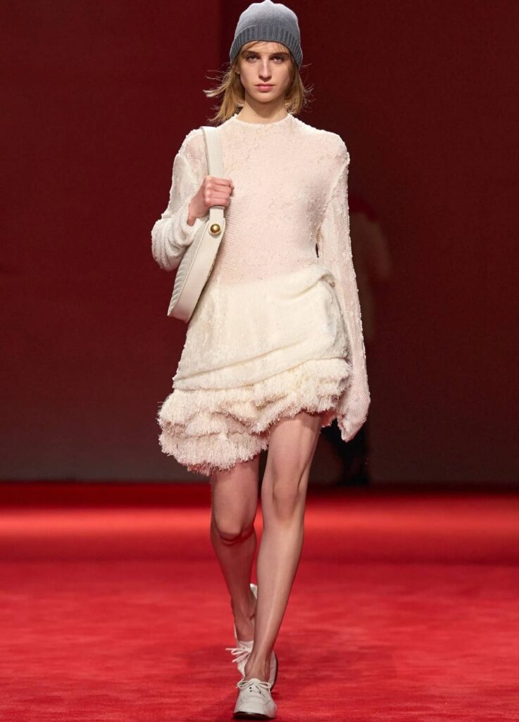 Rather than presenting a political statement or overt narrative, the collection focused on recalibrating the house’s long-established codes: texture, craftsmanship, and structural volume.