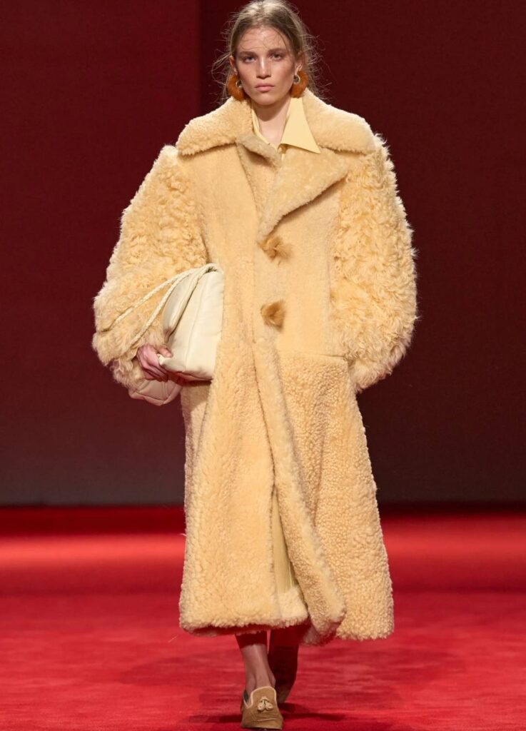 - Full fur volumes may overwhelm petite frames unless proportion is carefully adjusted.