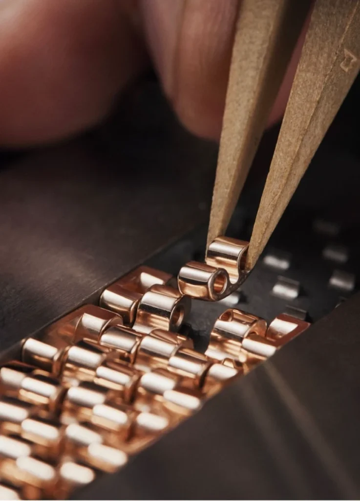 Each link is designed to move independently, allowing the bracelet to follow the wrist’s natural curvature rather than imposing its own geometry.