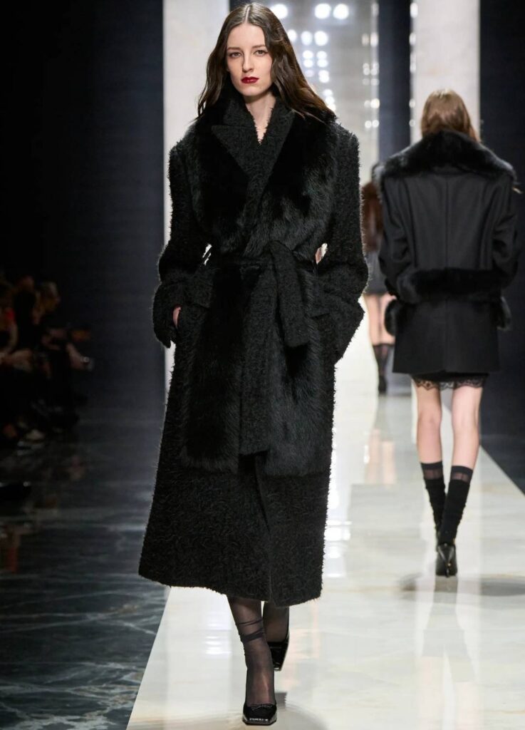 Within Milan’s Fall landscape, where dark palettes are common, this near-monochromatic focus felt deliberate rather than seasonal.