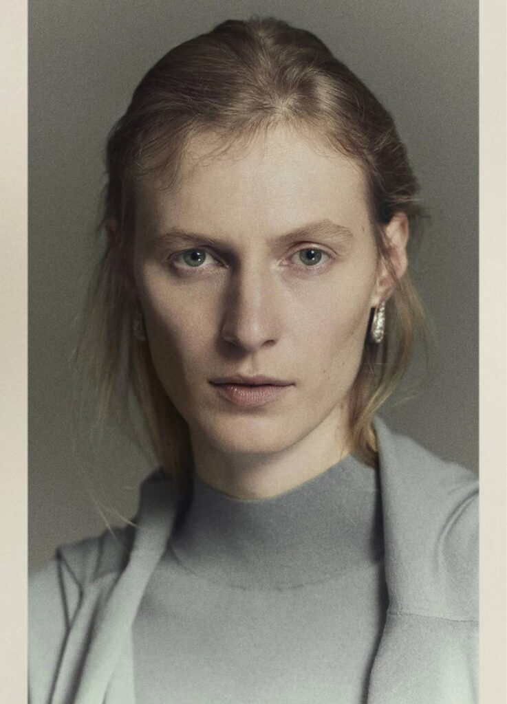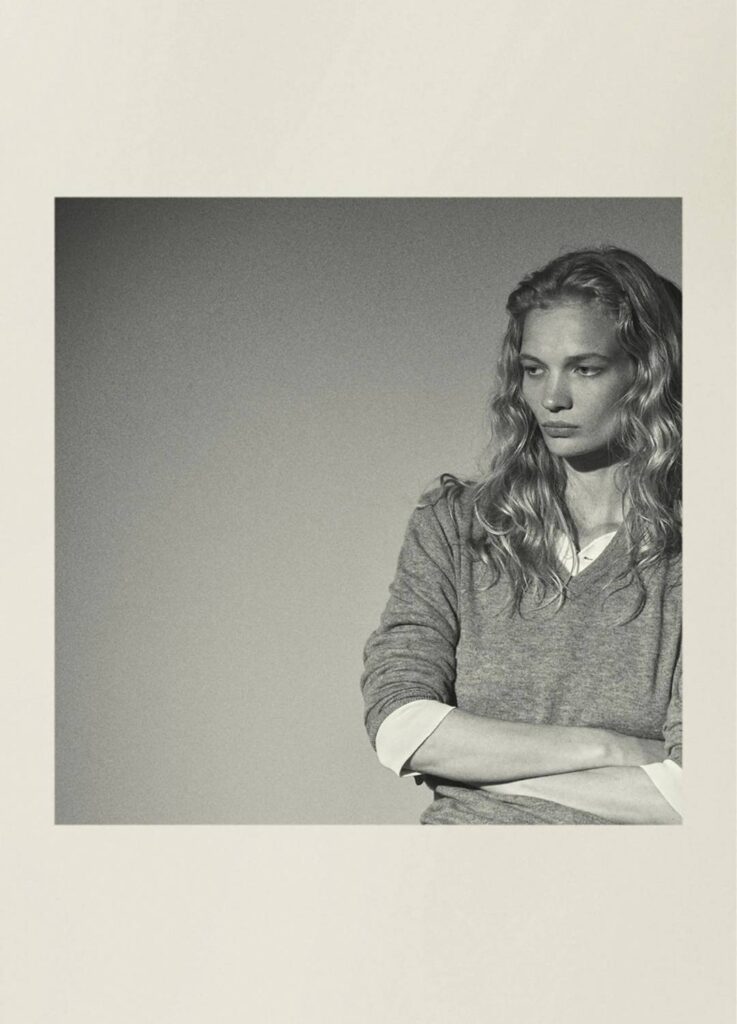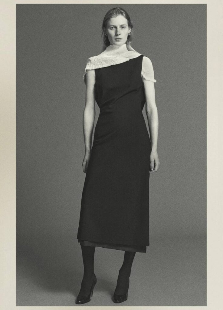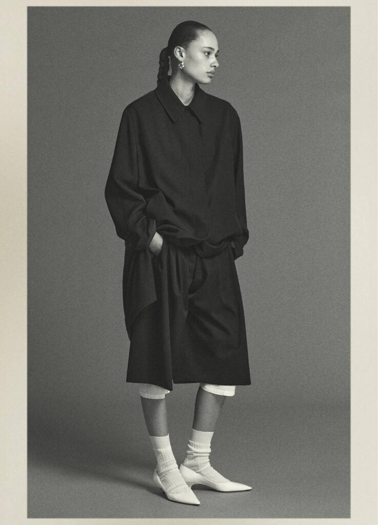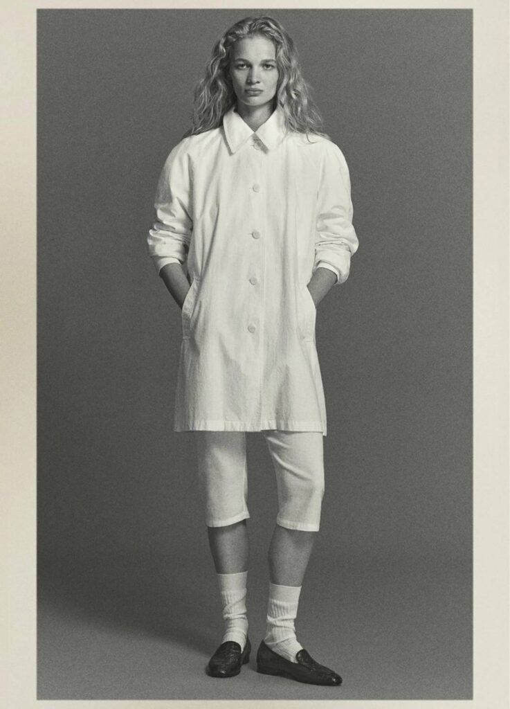 The season’s imagery feels closer to an old magazine editorial than a conventional lookbook. Poses are held. Expressions remain neutral. The clothes are not narrated; the background stays deliberately noncommittal.