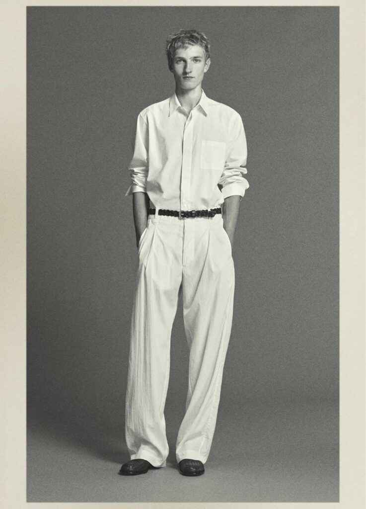 In that sense, The Row’s foundational philosophy—once articulated through the “perfect T-shirt”—expands here into shirt-and-trouser architecture.