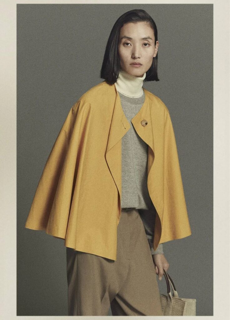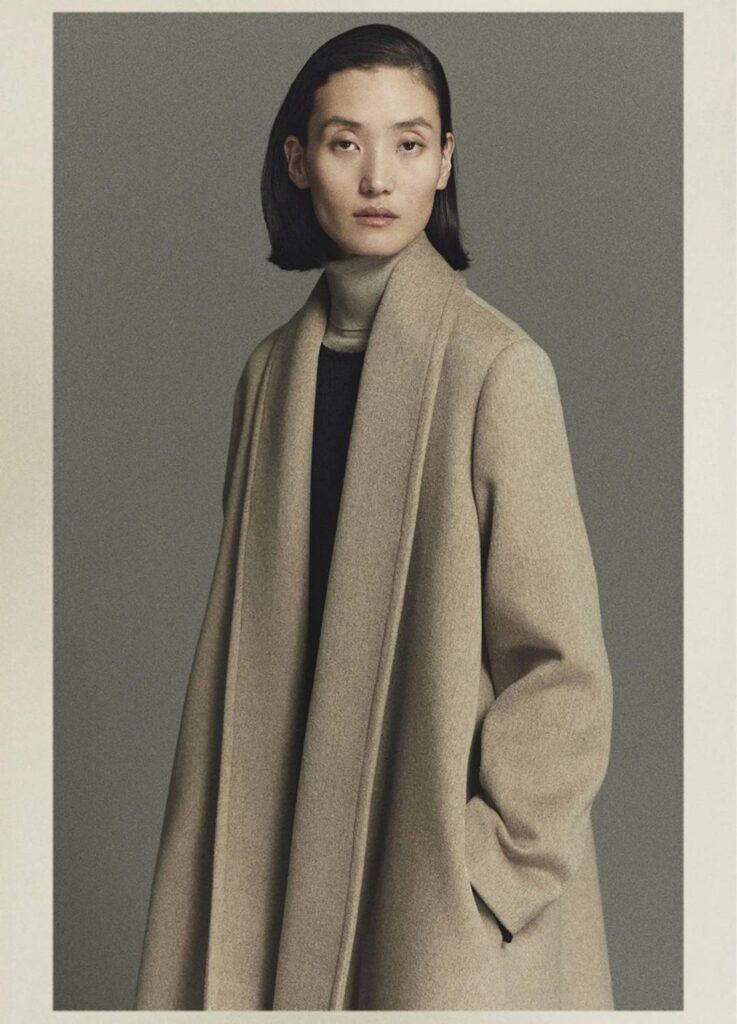 The season’s outerwear is not aggressively structured. Instead, it prioritizes how the garment wraps and protects the wearer’s condition. Robe-like cashmere pieces avoid sharp shoulders and rigid closures, reading less as “outerwear for display” and more as an extension of comfort into public space.