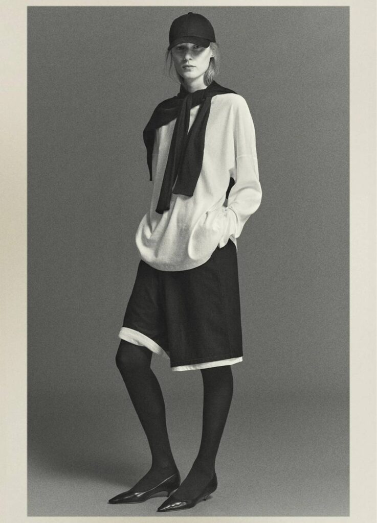 The most emblematic image this season is the simplest: a plain white shirt with straight or wide trousers. The point is not design but proportion. The shirt doesn’t cling, yet it doesn’t overwhelm. The trousers hold the waist with quiet certainty. The result is not body-revealing but body-organizing—bringing the wearer’s center into focus.