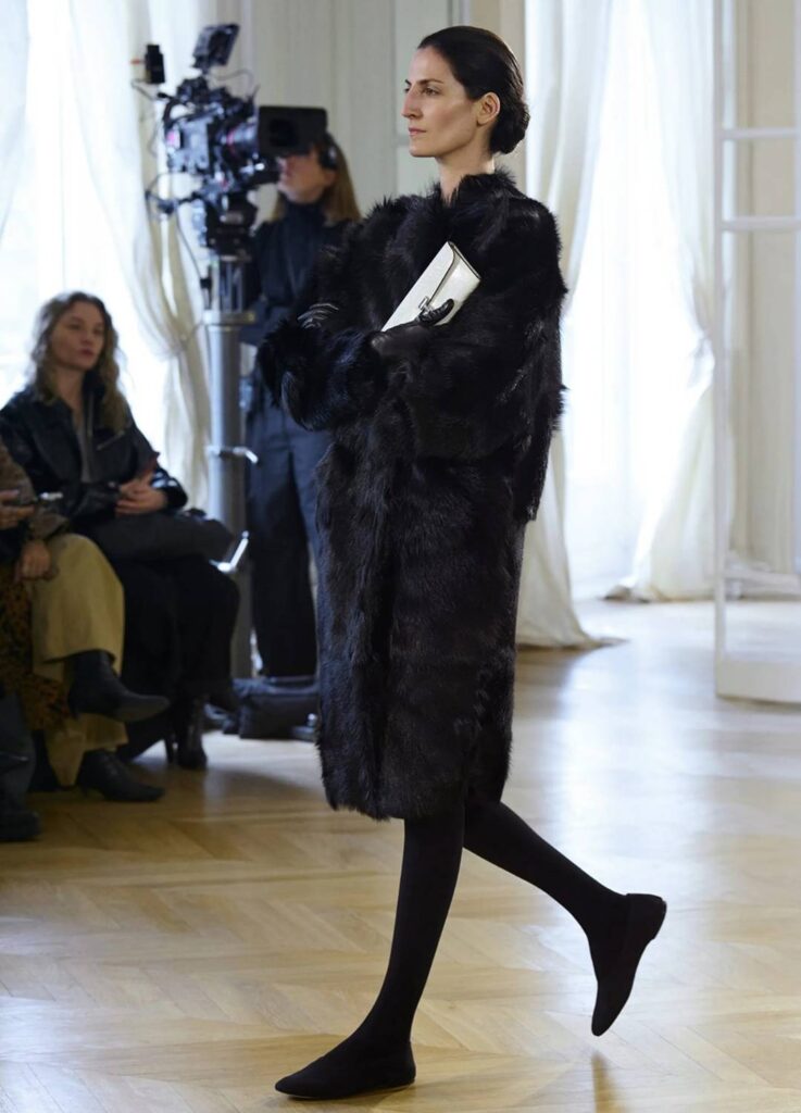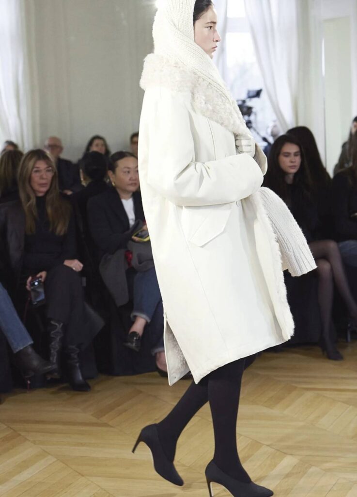 Cashmere linings and cocooning shearling coats articulate the idea of protection with quiet clarity.